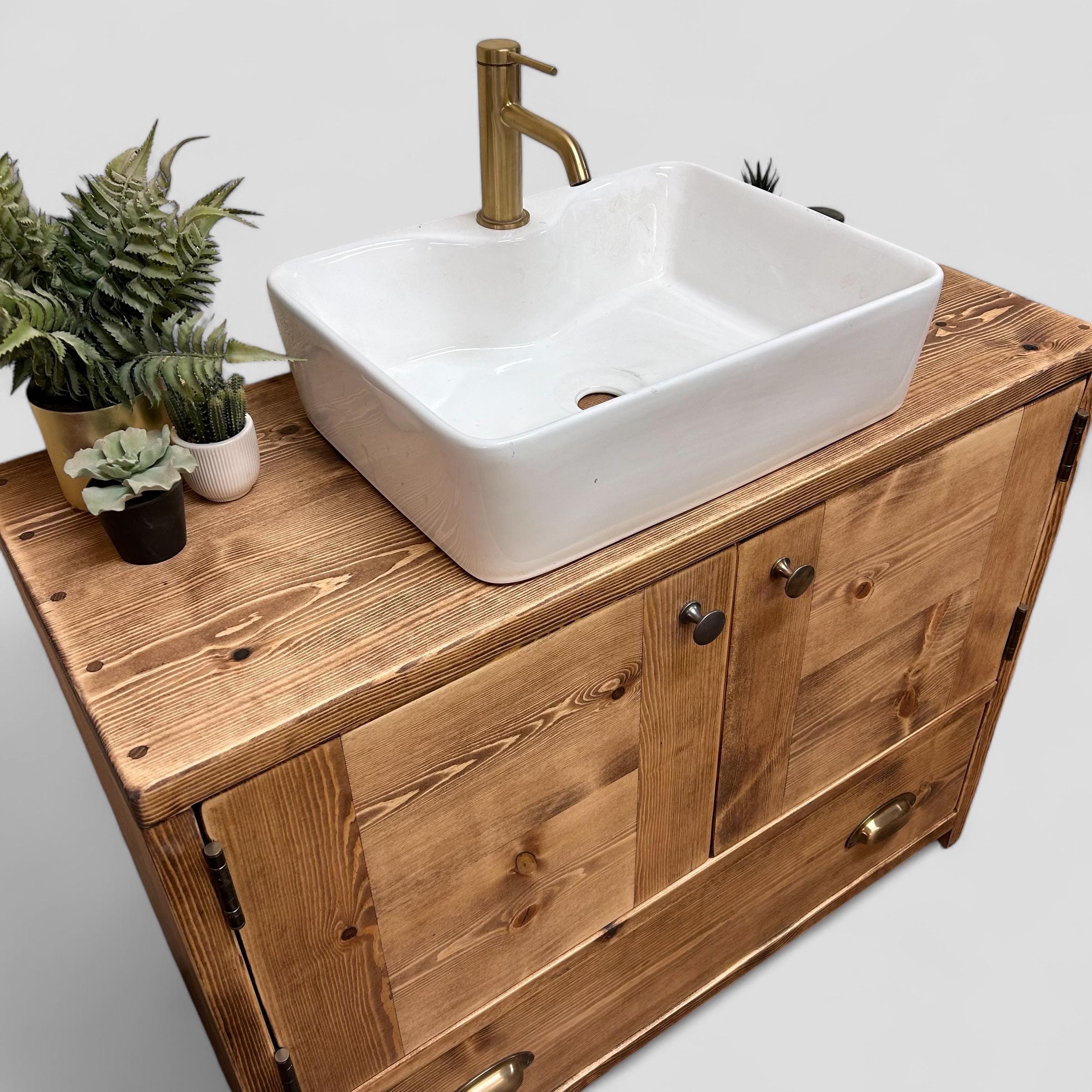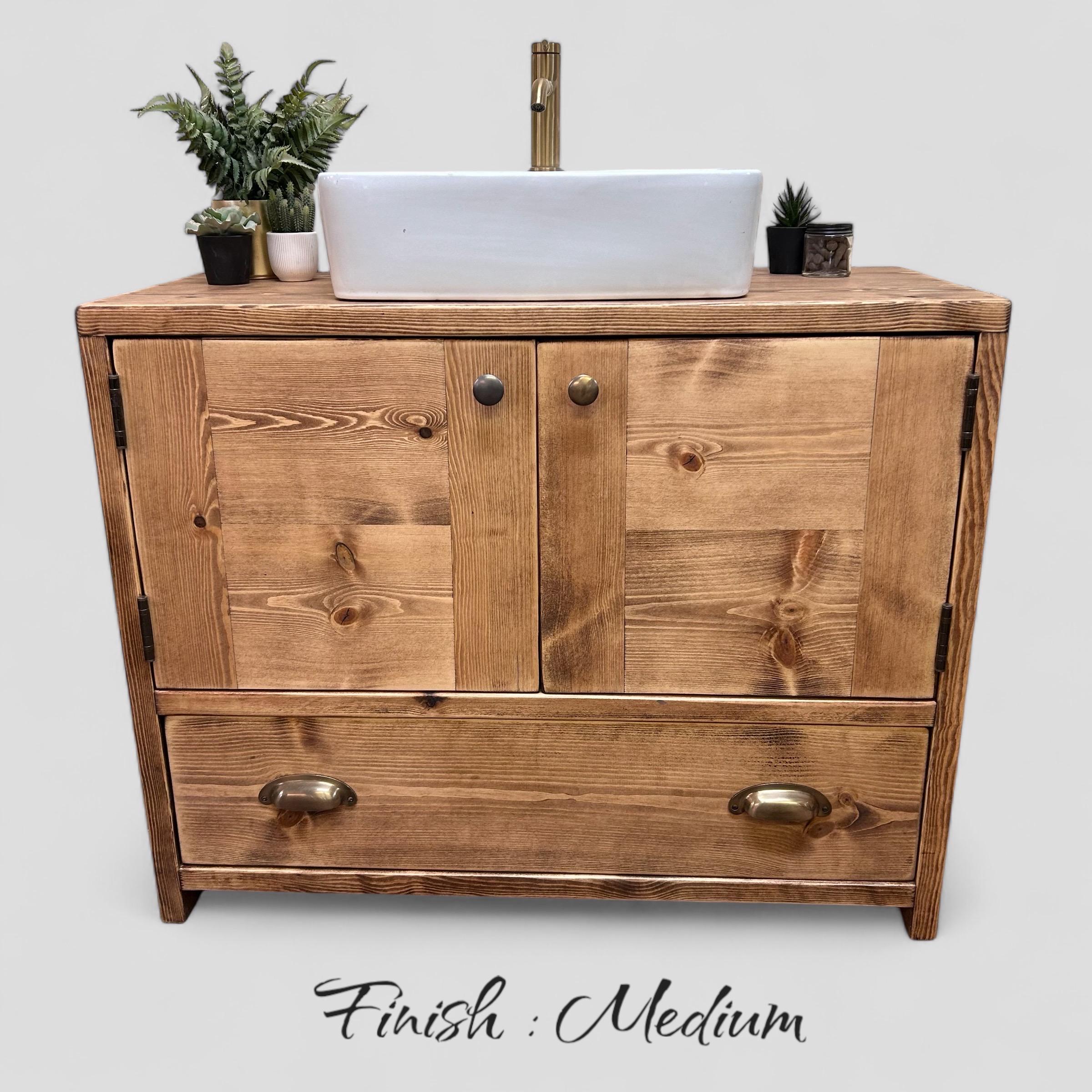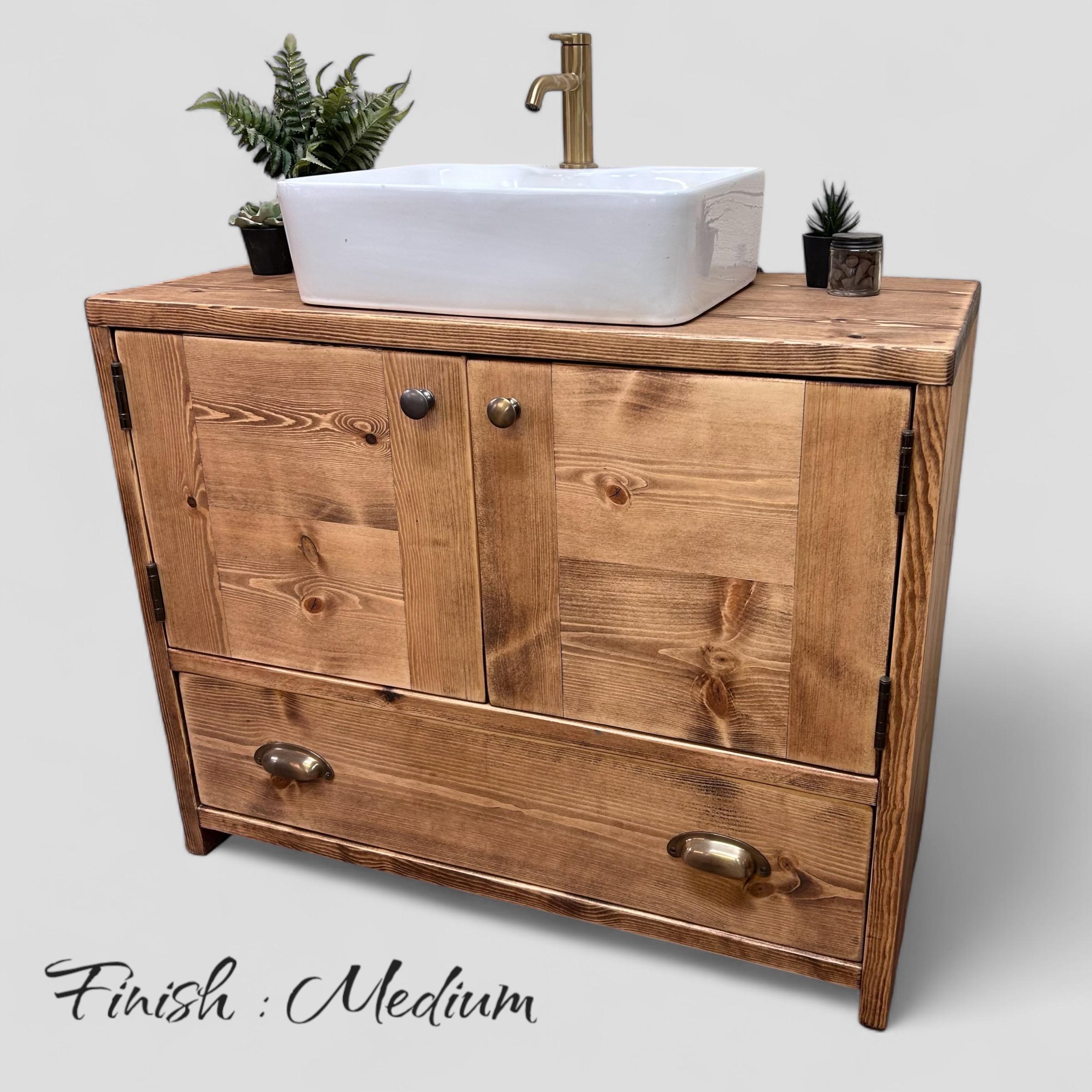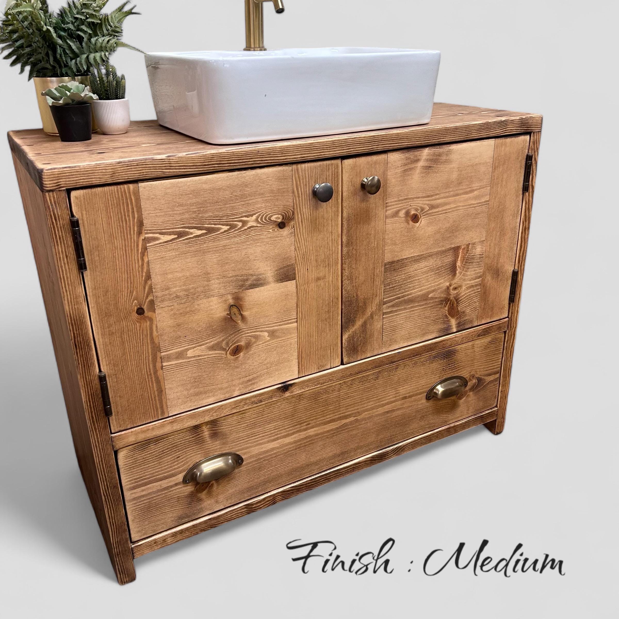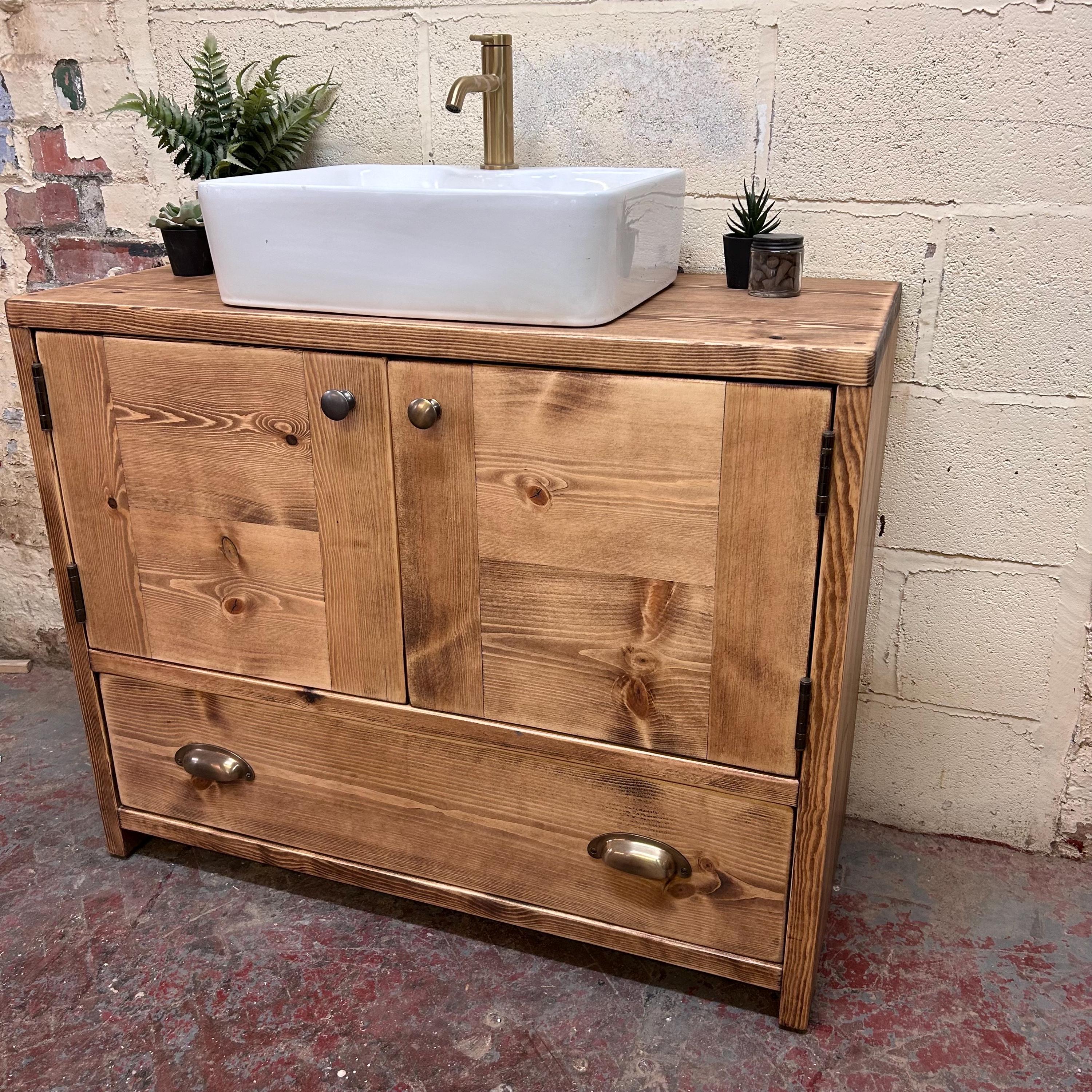 Our bathroom range of furniture is built using 32 mm thick FSC-certified redwood pine timber, once built the timber is coloured in your choice of oil from our range and then sealed with two coats of eco friendly hard wax oil to both enhance and protect the wood, giving a super smooth soft to the touch finish, we also supply a bottle of spray cleaner to maintain the finish with each unit.