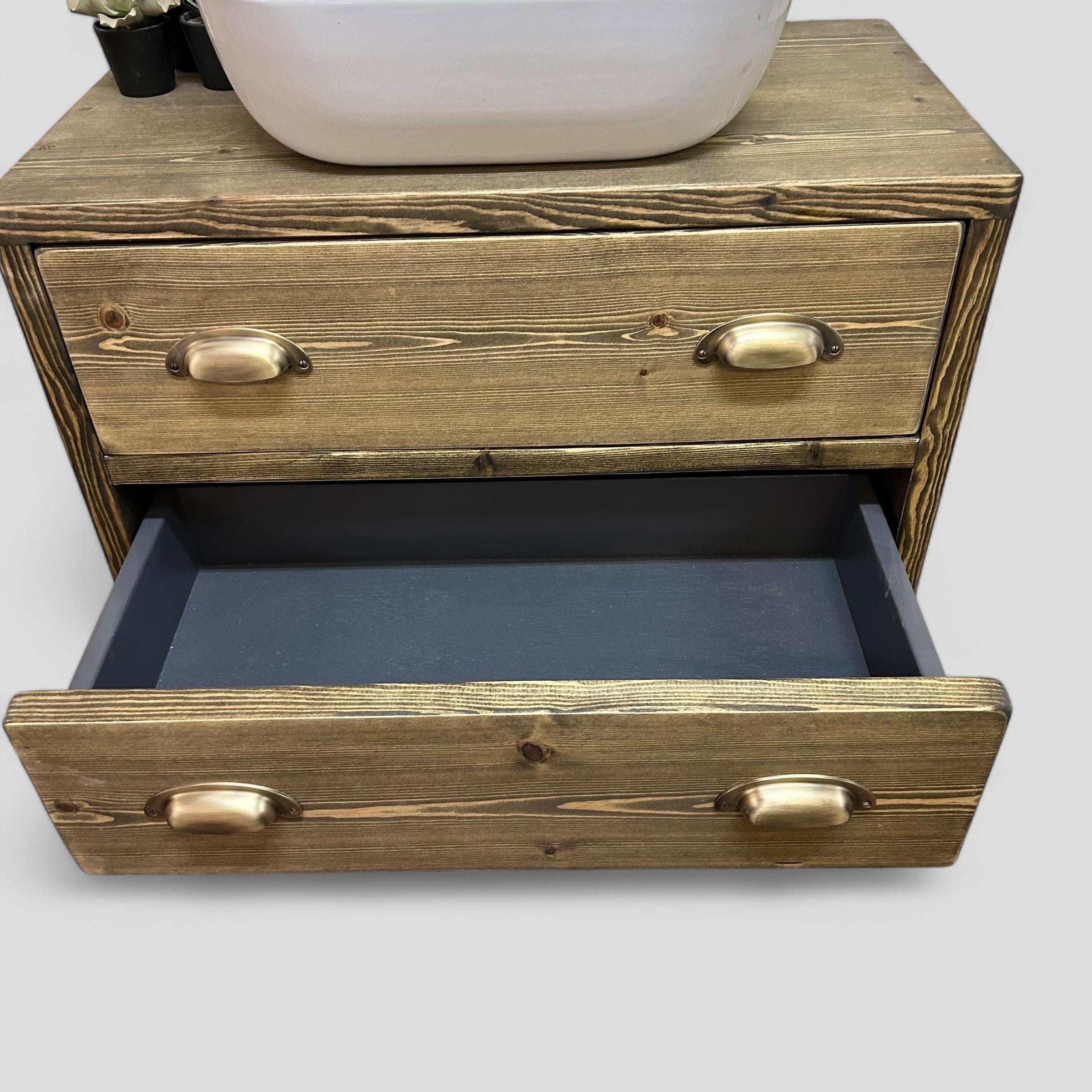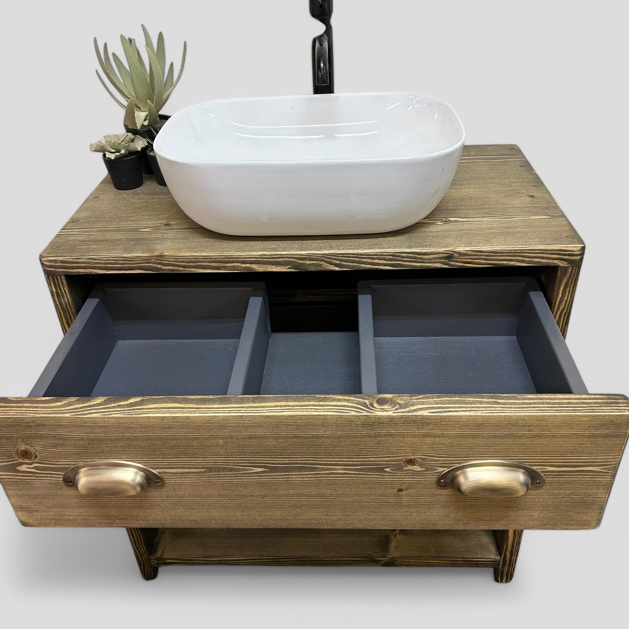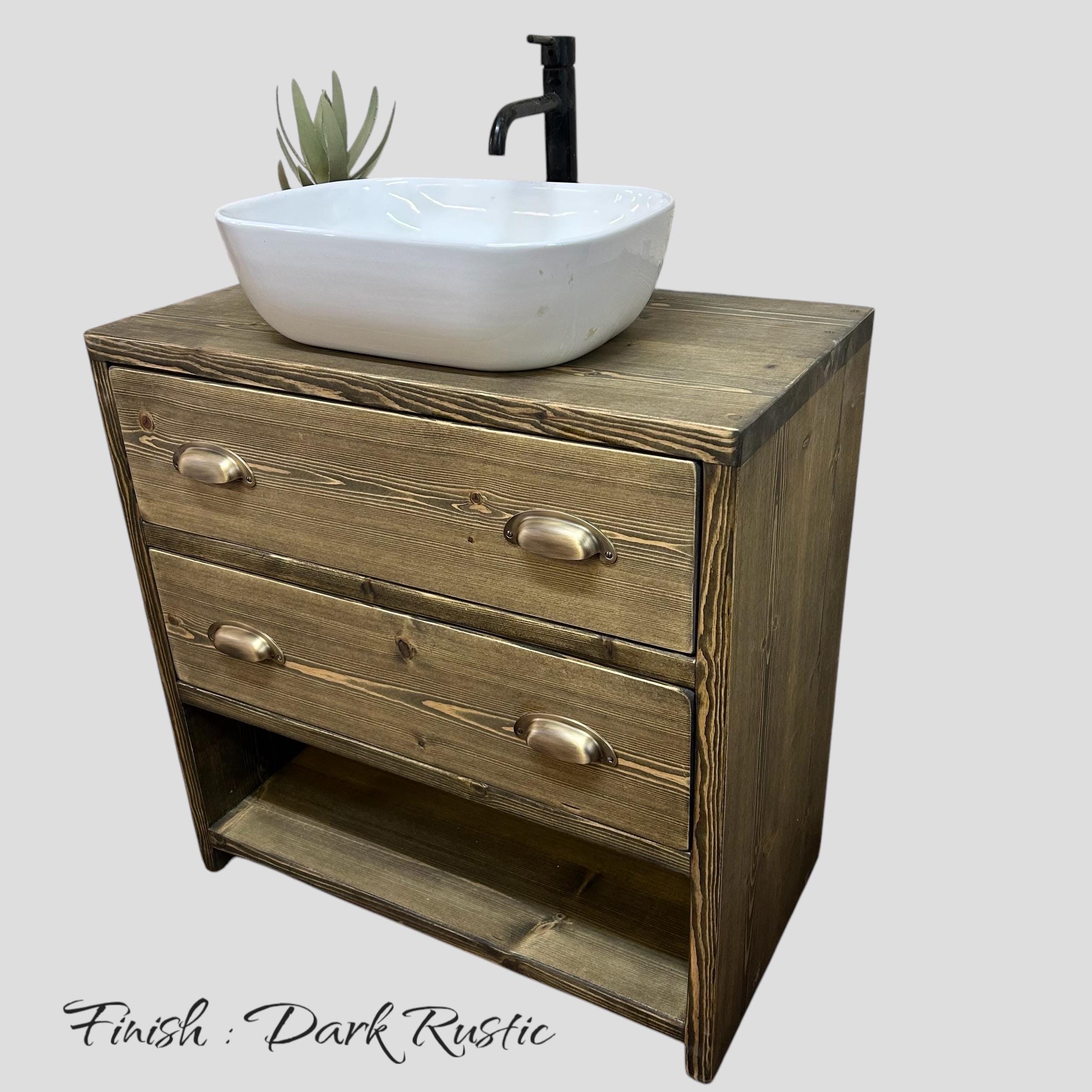 We can now offer the option to build all of our bathroom furniture range using locally sourced solid 36mm thick reclaimed timber along side our solid 32 mm thick redwood timber, so if you want a more rustic looking vanity but still with the super smooth rounded finish of our redwood range add a note to your order, more images will be added to the listings as we build customer orders.