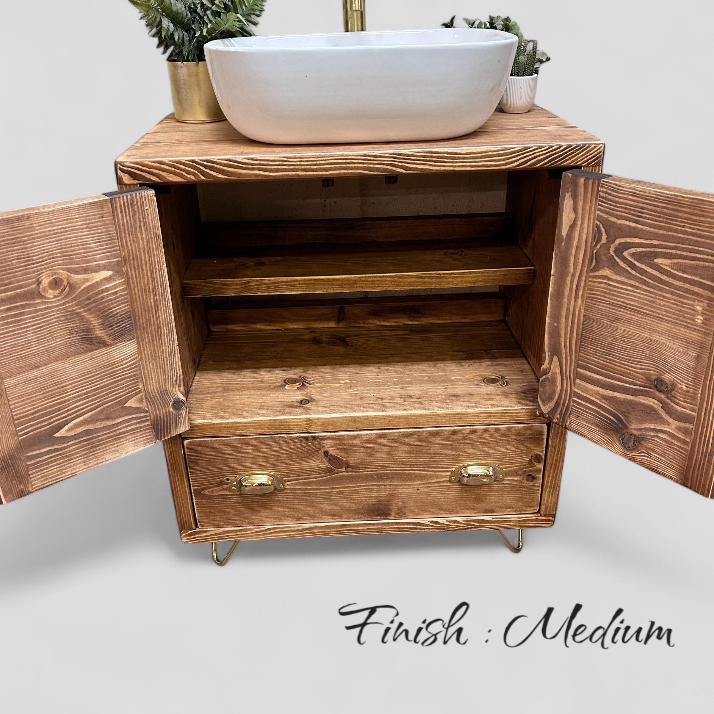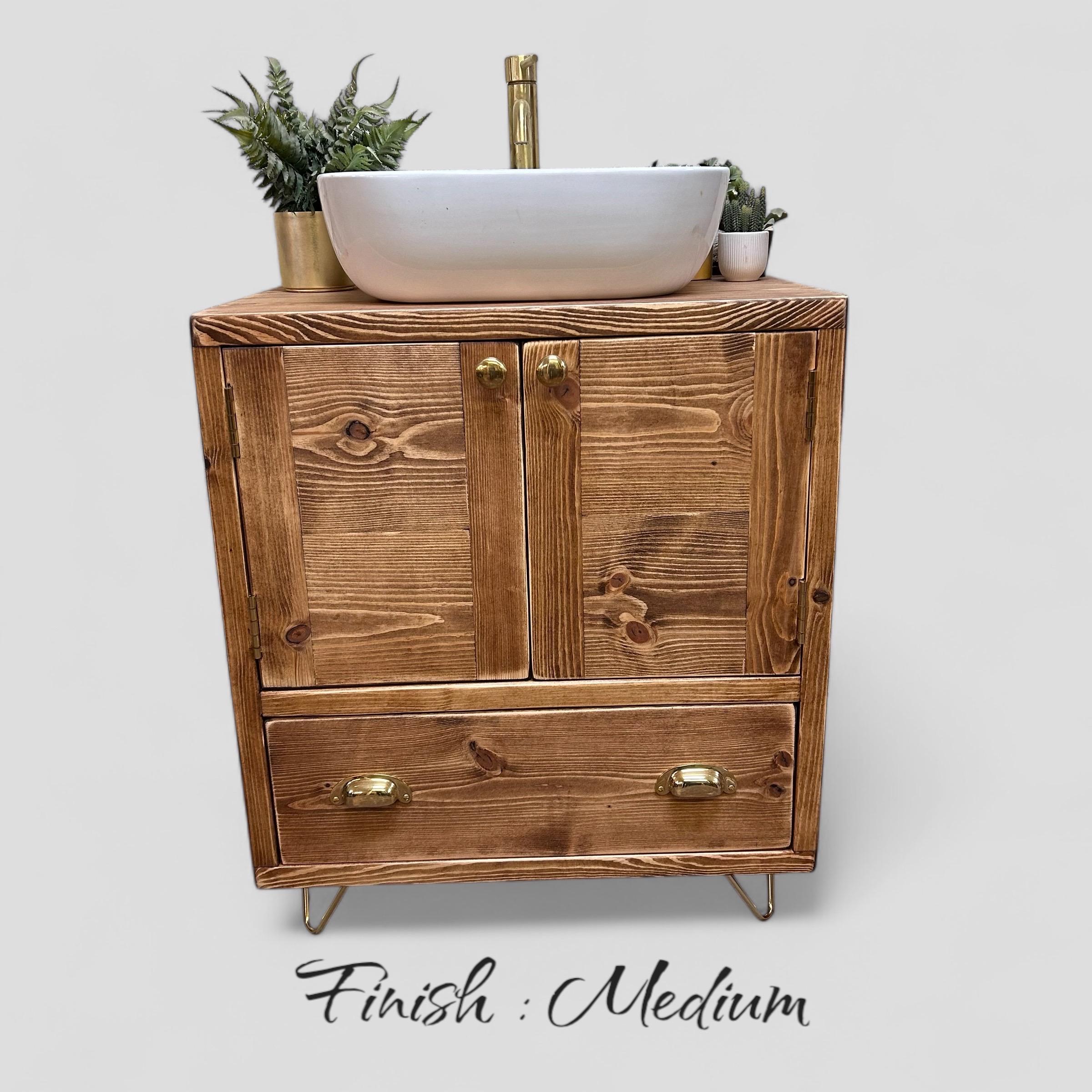 Our bathroom range of furniture is built using 32 mm thick FSC-certified redwood pine timber, once built the timber is coloured in your choice of oil from our range and then sealed with two coats of eco friendly hard wax oil to both enhance and protect the wood, giving a super smooth soft to the touch finish, we also supply a bottle of spray cleaner to maintain the finish with each unit.