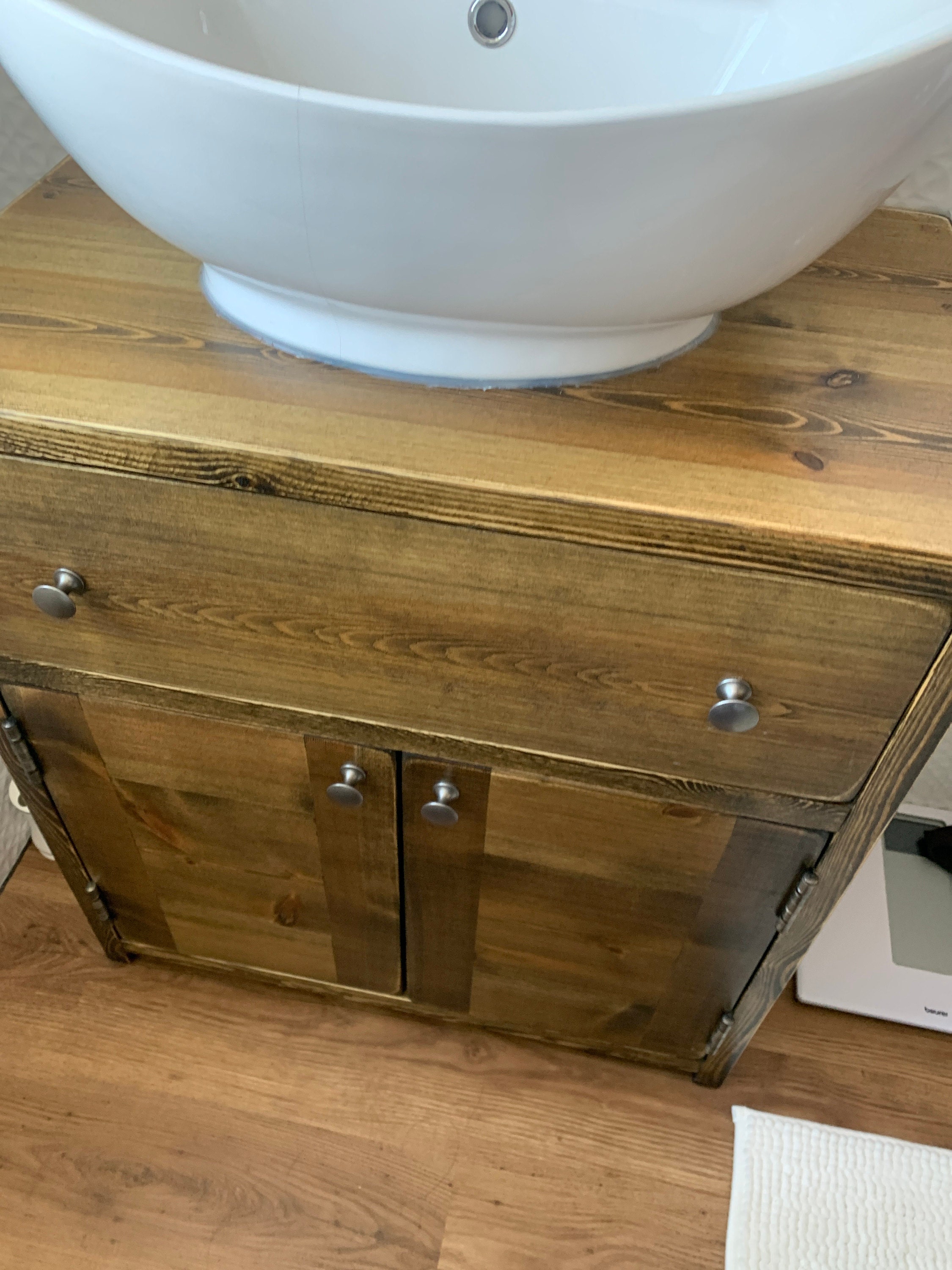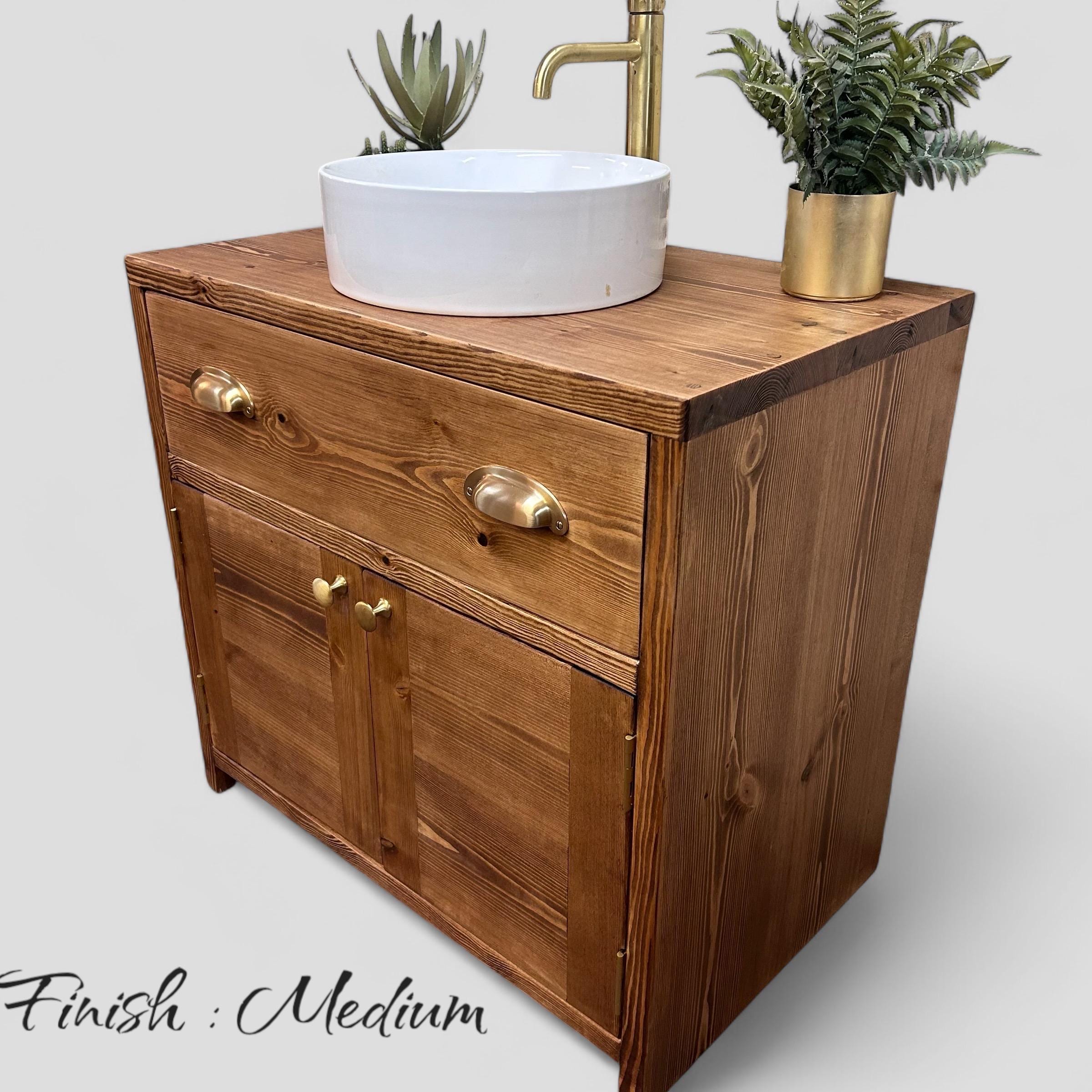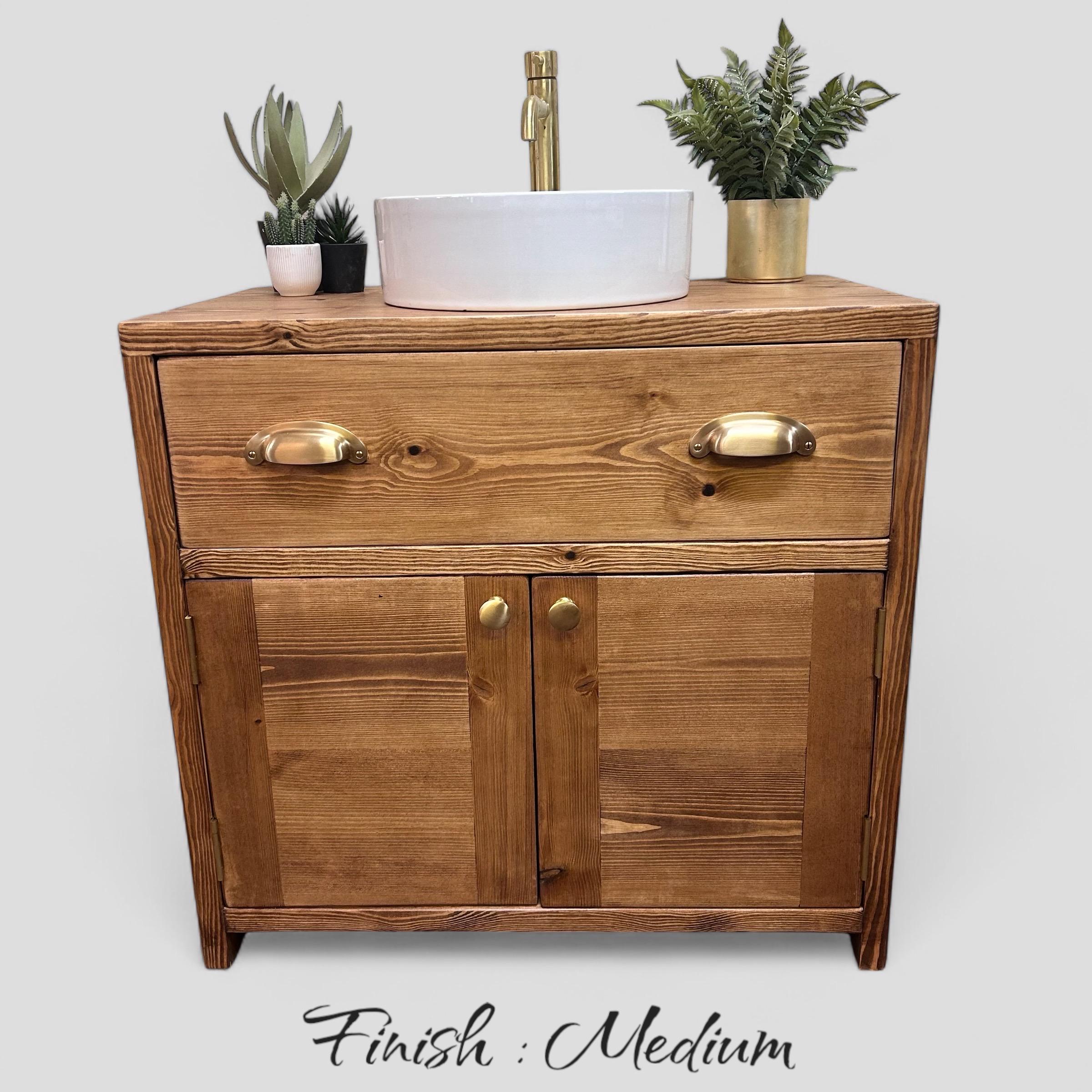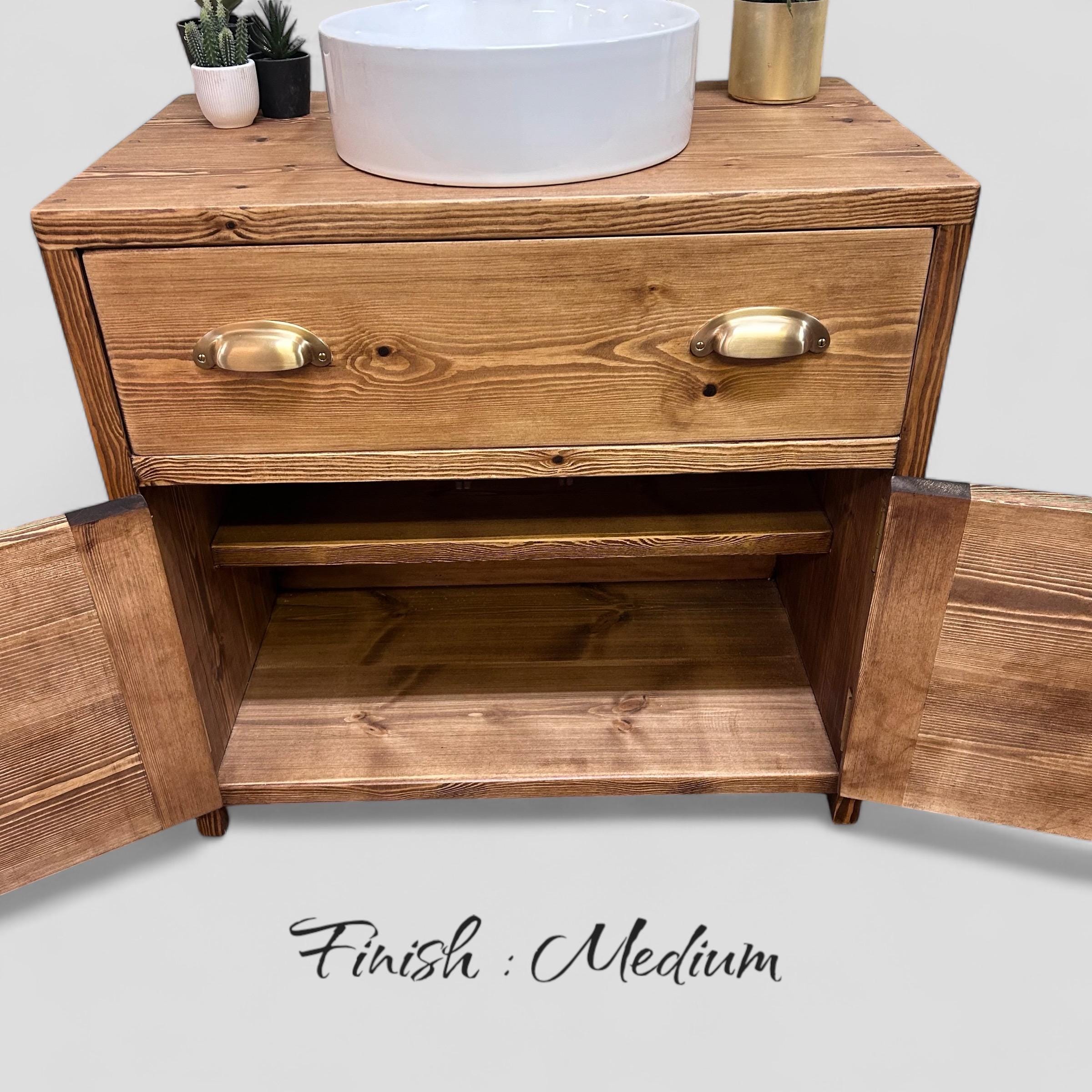 Our bathroom range of furniture is built using 32 mm thick FSC-certified redwood pine timber, once built the timber is coloured in your choice of oil from our range and then sealed with two coats of eco friendly hard wax oil to both enhance and protect the wood, giving a super smooth soft to the touch finish, we also supply a bottle of spray cleaner to maintain the finish with each unit.